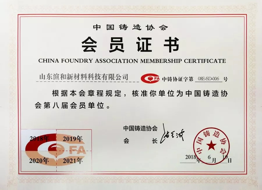 热烈庆祝山东渲和新材料科技有限公司成为中国铸造协会会员单位