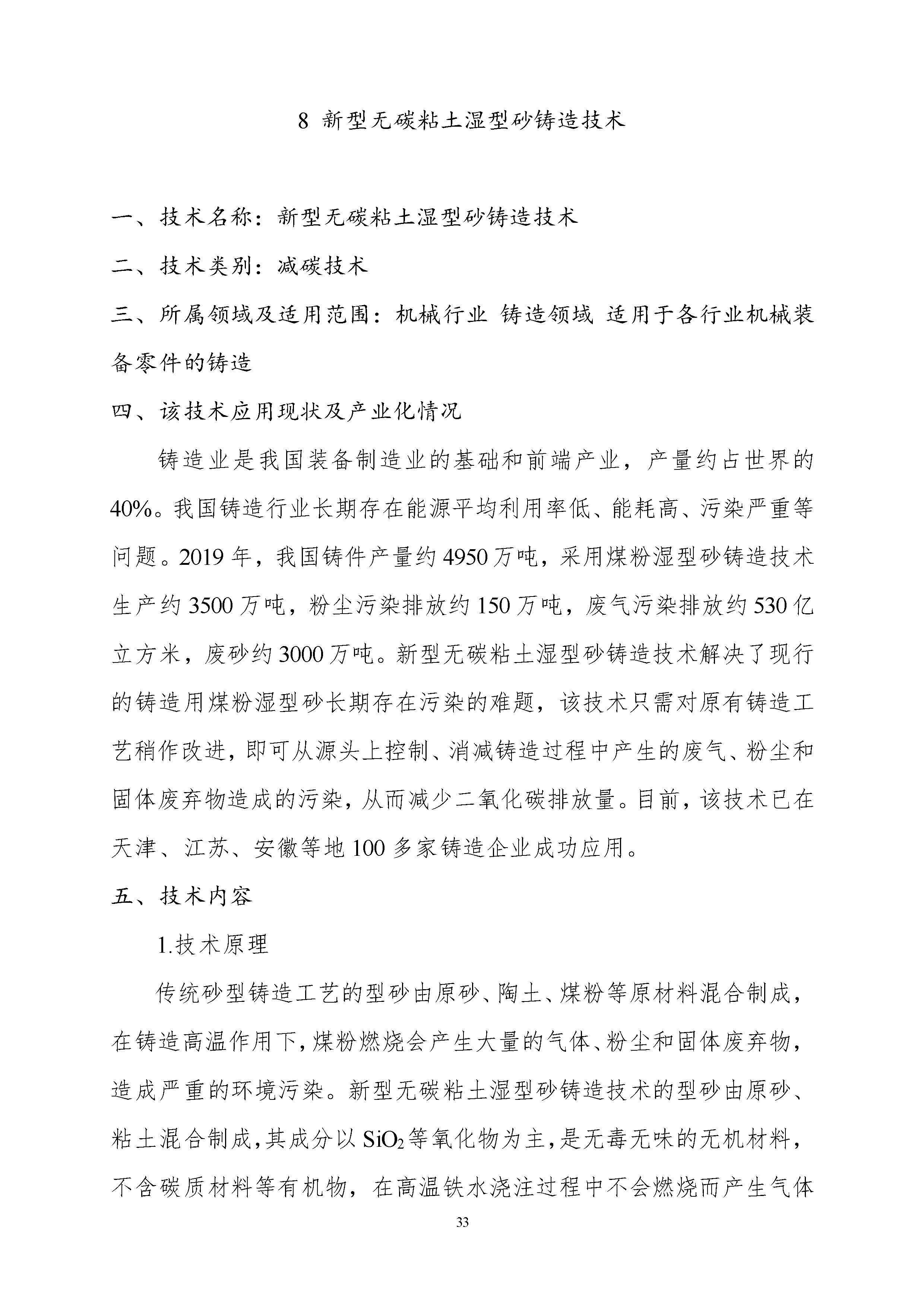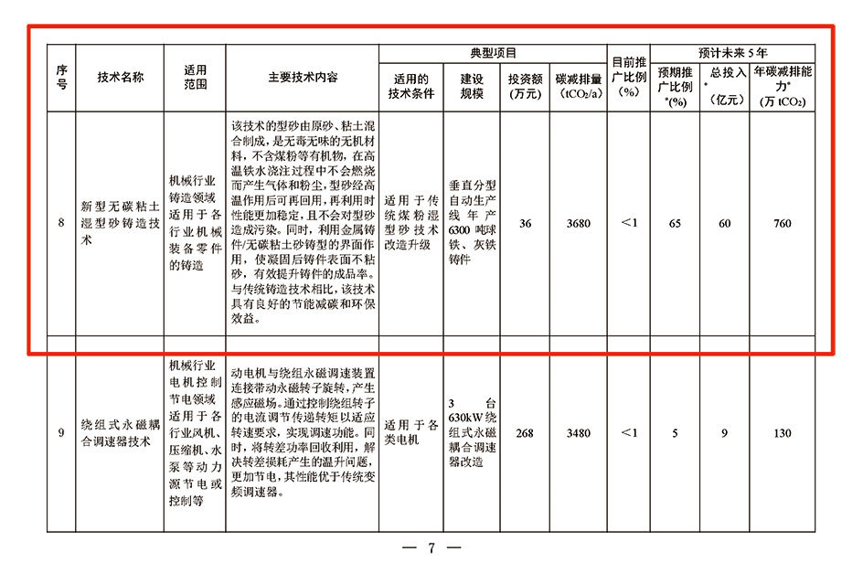 国家生态环境部办公厅印发了关于《国家重点推广的低碳技术目录(第四批)》的通知,内容包括6类共35项低碳技术,山东渲和新材料科技有限公司研发的新型无碳粘土湿型砂铸造技术被收录其中,附件如下: