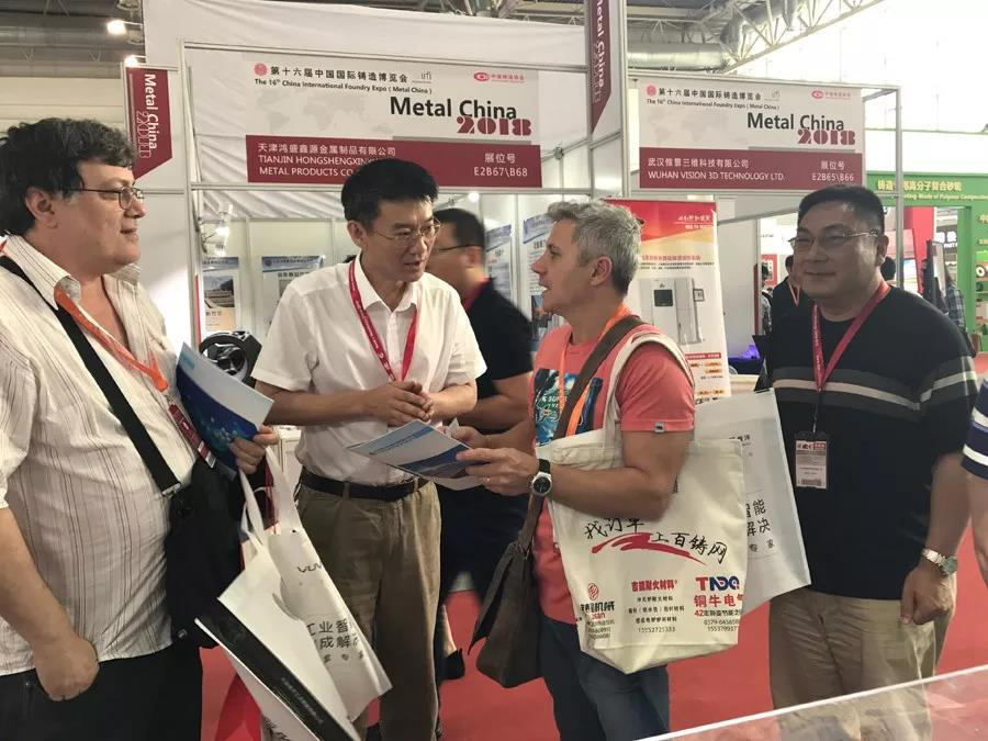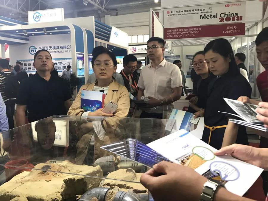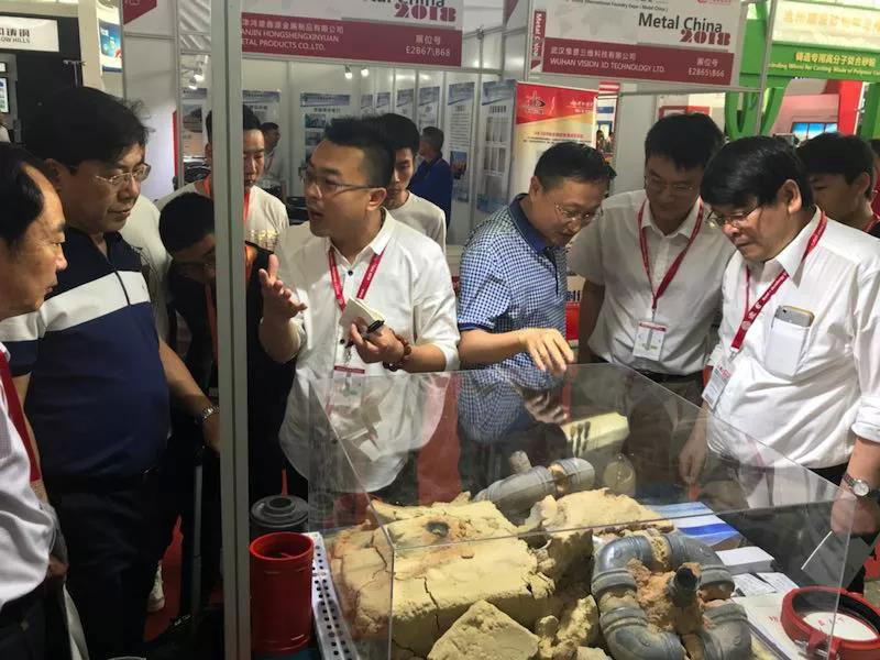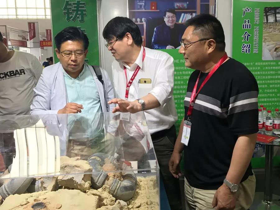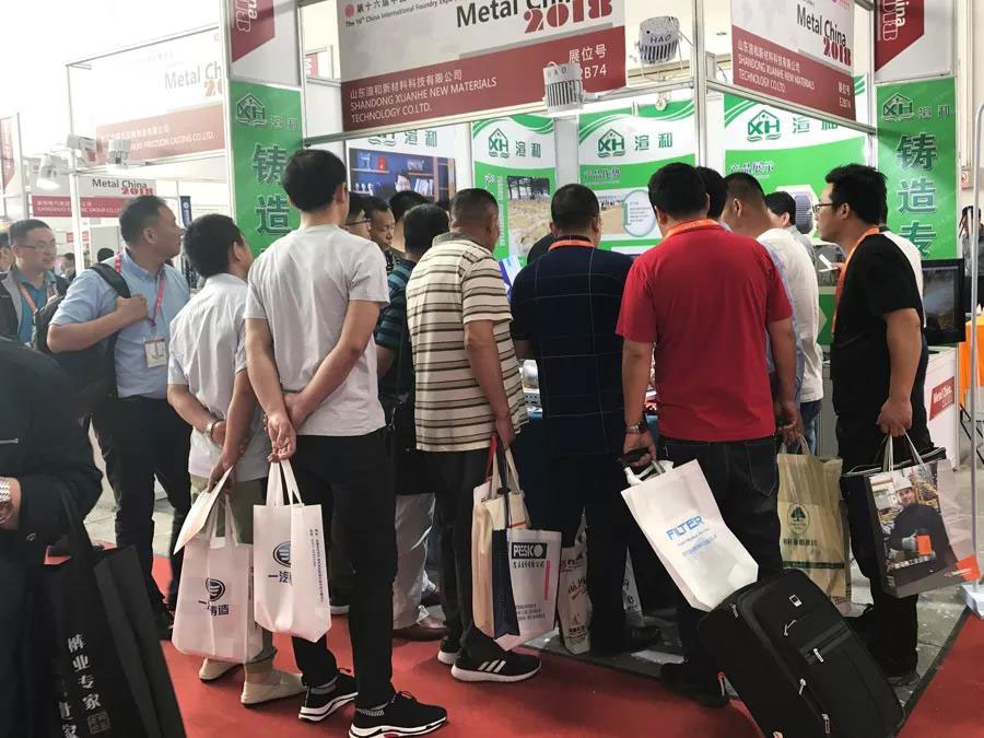 2018年第三届中国铸造节暨第十六届中国国际铸造博览会5月16日在北京中国国际展览中心(北京顺义新馆)开幕,在E2展馆优质铸件管展示大厅里,山东渲和新材料科技有限公司带着颠覆传统铸造行业的革命性成果——“‘渲和1号’新型无碳粘土湿型砂”首次亮相博览会,作为全球首创的国家专利产品,凭借“资源节约型绿色环保造型材料”的独特优势,参展第一天就吸引了众多观展人员的目光,现场人气爆棚,前来咨询洽谈的客户络绎不绝。